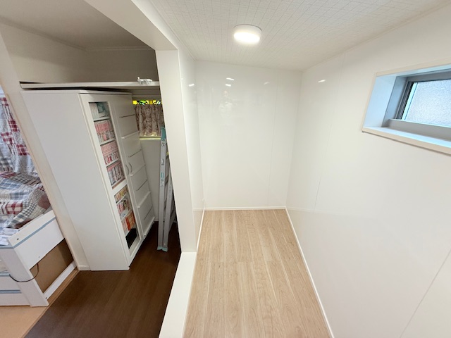 お客様から依頼を受けて、雨漏れで傷んでしまっている部分の補修工事と雨漏れ対策工事をさせていただきました。特殊な構造でしたが費用を抑えるために、既設の躯体を利用しながら何とか施工しました。床はフローリングで壁はパネル貼りで天井は吸音板で仕上げました。綺麗になりお客様にも喜んでいただけました。