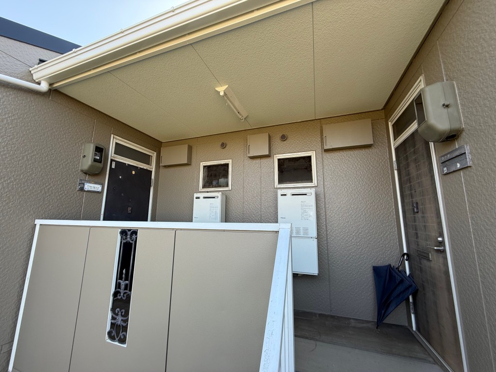 お客様から依頼を受け、アパート2棟の外壁塗装工事をさせていただきました。1棟は屋根の状態も良くなかったので屋根塗装もさせていただきました。駐輪場の屋根も傷んでいたのでシート貼替と塗装工事をさせていただきました。全体的に落ち着いた雰囲気に仕上がり、お客様にも喜んでいただけました。