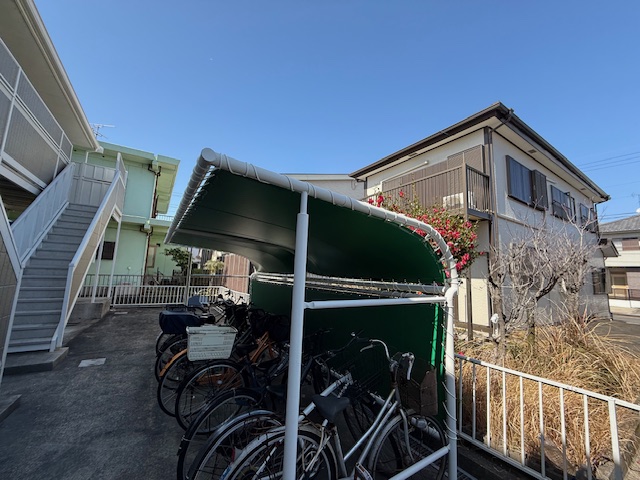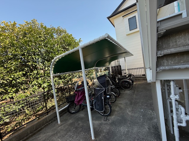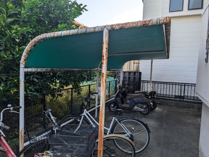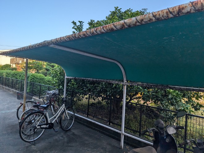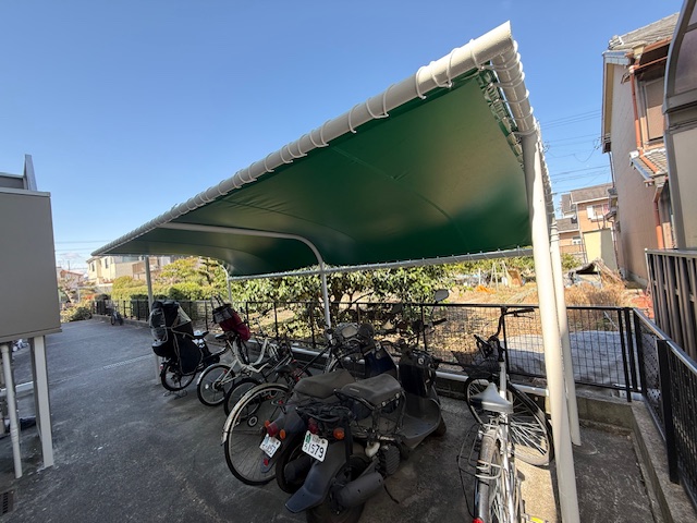 【工事後】 駐輪場の骨組を塗装して、シートを貼替しました。