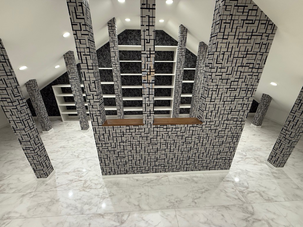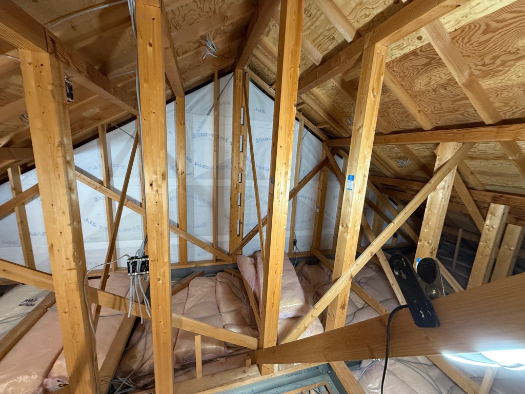 お客様から小屋裏を部屋にしてほしいというご要望を受けました。小屋裏に行くための梯子を新設して小屋裏に登れるようにいたしました。天井や壁は断熱材を入れエアコンも設置しました。収納棚を天井の形状に合わせて造作しました。収納を増やしながらお客様の趣味部屋が出来てお客様にも喜んでいただけました。