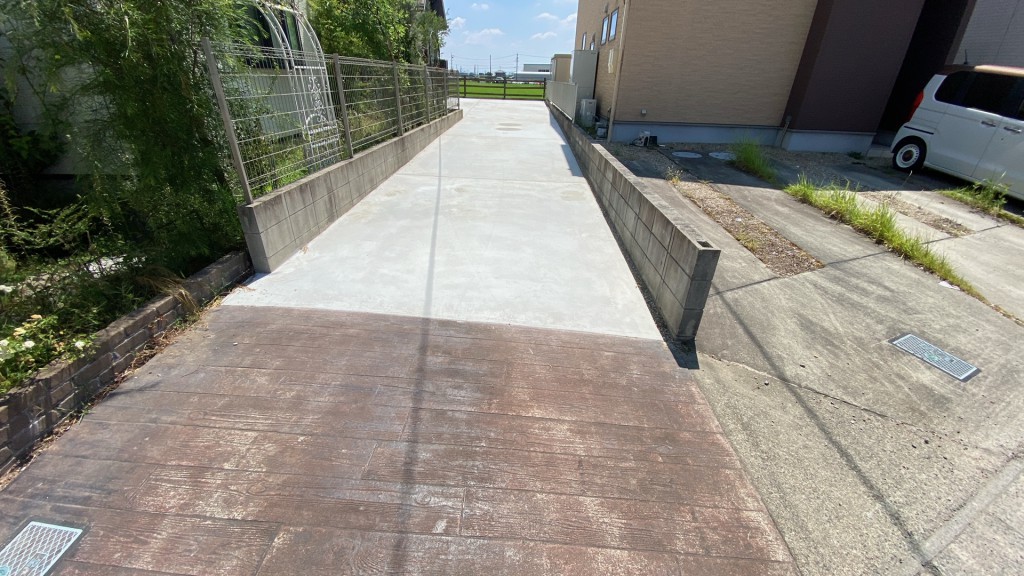 お客様から依頼を受け、敷地内の雑草が生えないように敷地全体をコンクリートにしました。フェンスも腐食していたので、アルミ柱を残して木部フェンスを取替させていただきました。