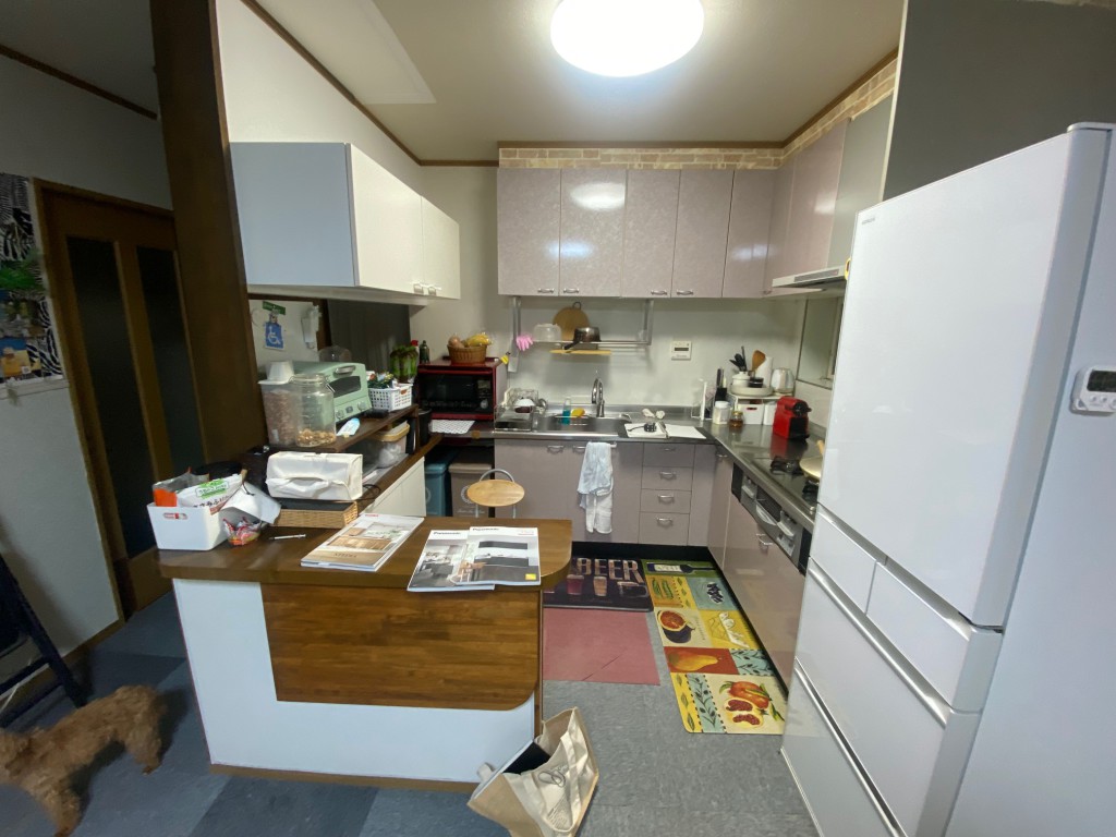 お客様から依頼を受けて、キッチン取替工事をさせていただきました。キッチン取り外した壁部分は下地を造作してパネル貼りとし、キッチン天井は吸音板を重ね貼りしてその他の壁と天井はクロス既設利用としました。床はカーペットからフローリングにして床断熱材を床下から施工しました。快適に使えるようになりお客様にも喜んでいただけました。
