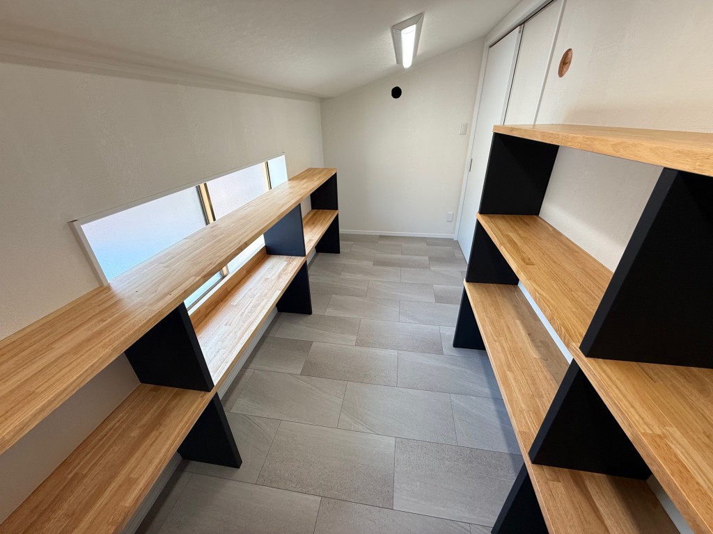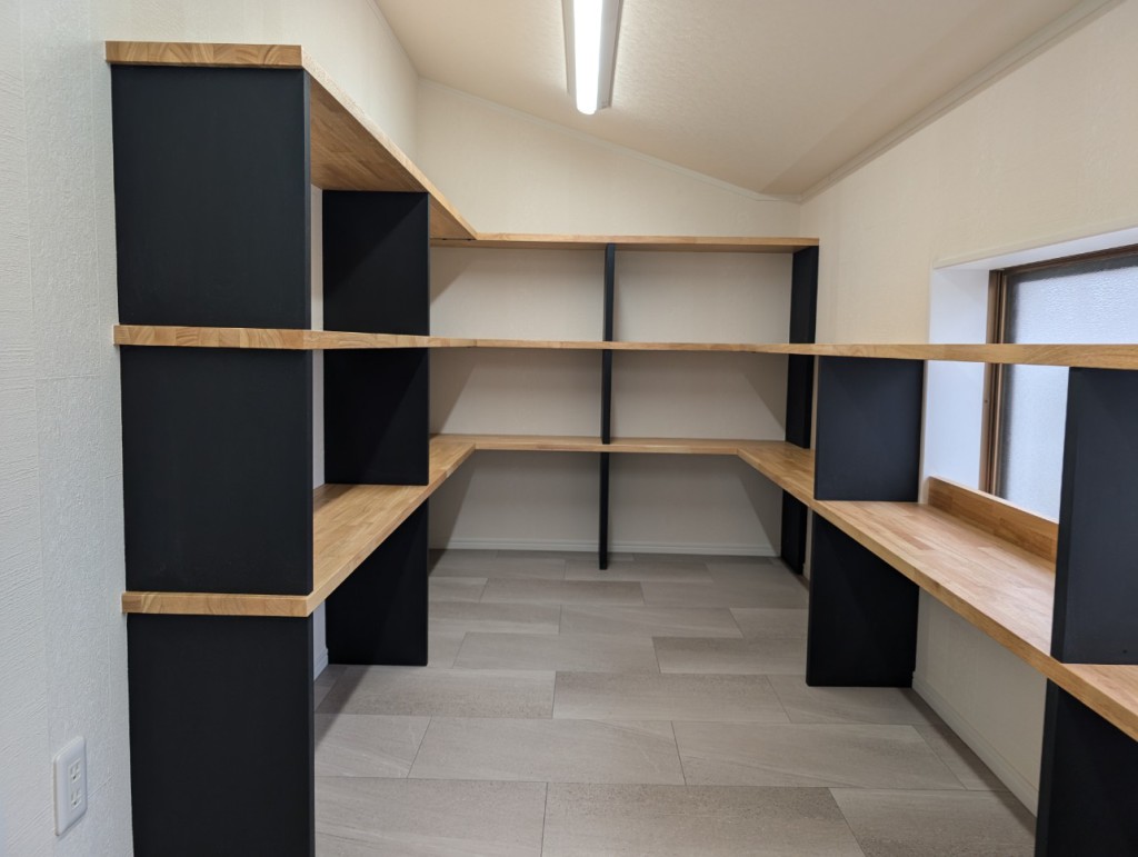 【施工後】 持ち出し可動棚と固定棚を新設しました。