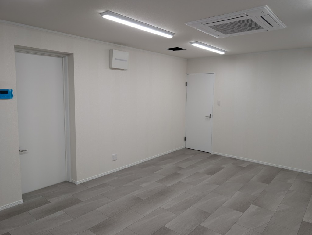 お客様から依頼を受け、事務所2部屋改装工事をさせていただきました。2棟隣り合わせの建物でオーナー様の許可をもらって、壁を壊し隣同士行き来出来るようにして2部屋改装工事させていただきました。お客様と打ち合わせで図面に机やOA機器のレイアウトしていくと少し狭いようでしたので、間仕切りを壊し少し増築しました。今までの事務所より広く使えて綺麗になったのでお客様にも喜んでいただけました。